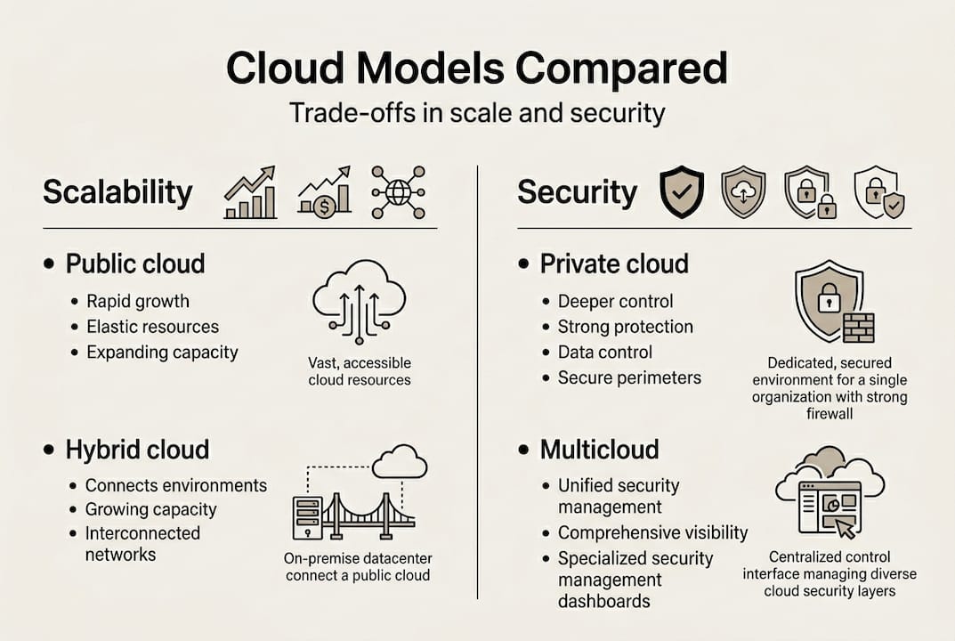 Deployment model selection is where cloud strategy gets concrete. Each model carries distinct trade-offs across cost, compliance, flexibility, and operational risk.