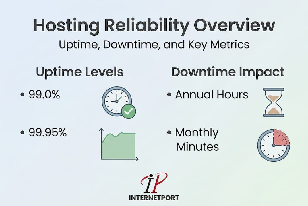 Most conversations about hosting reliability start and end with a single number: uptime percentage. That is a mistake. Hosting reliability refers to the percentage of time a web hosting service is accessible and operational, primarily measured as uptime, where 99.9% allows roughly 8.76 hours of downtime per year. The number looks impressive on a spec sheet, but the table below shows how quickly those allowed hours stack up.