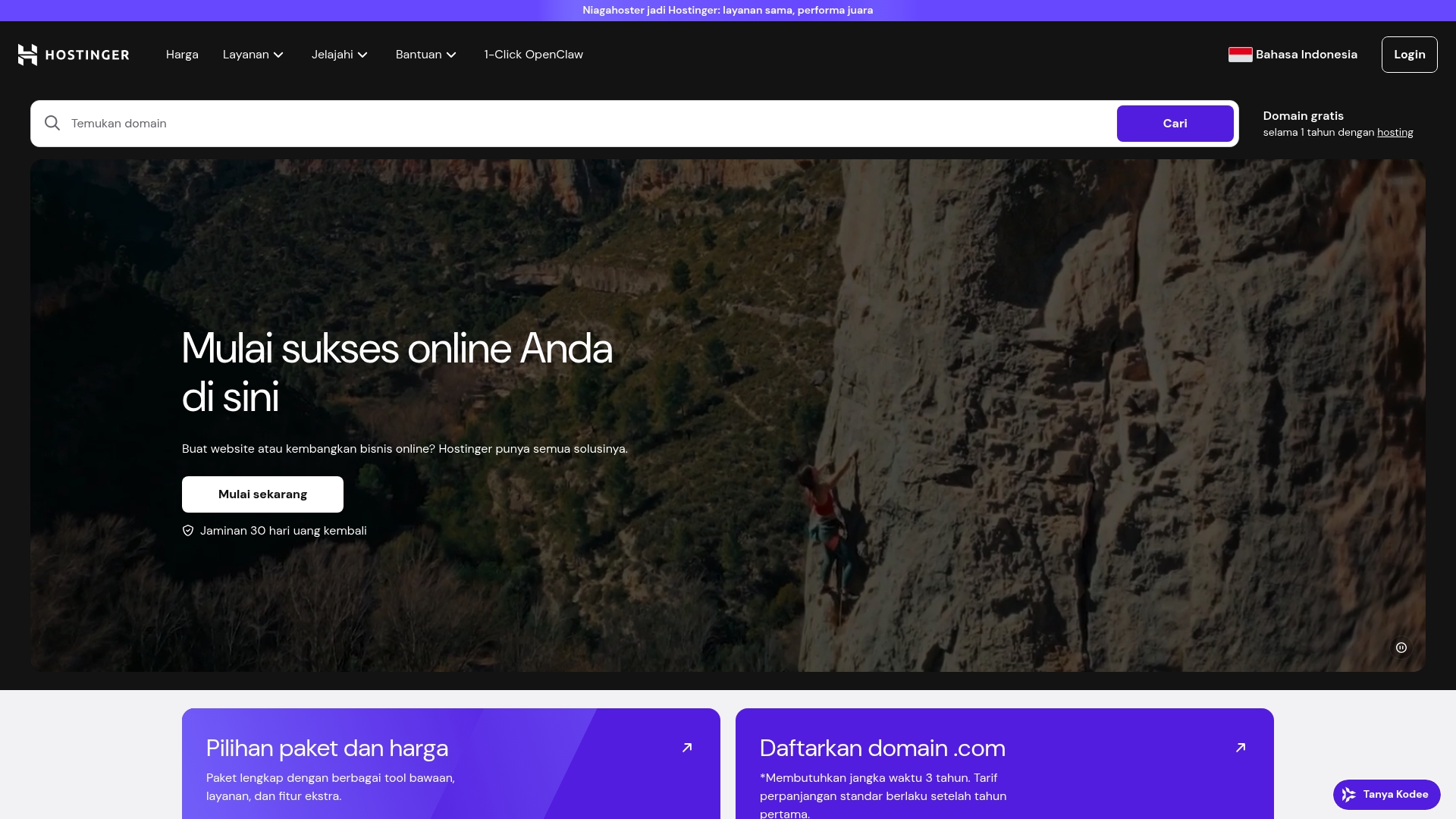 Niagahoster delivers a full suite of web hosting services with a clear focus on fast performance and accessible tools. Rebranded as Hostinger according to the product data, it pairs AI website builder convenience with traditional hosting options for SMBs and solo entrepreneurs.