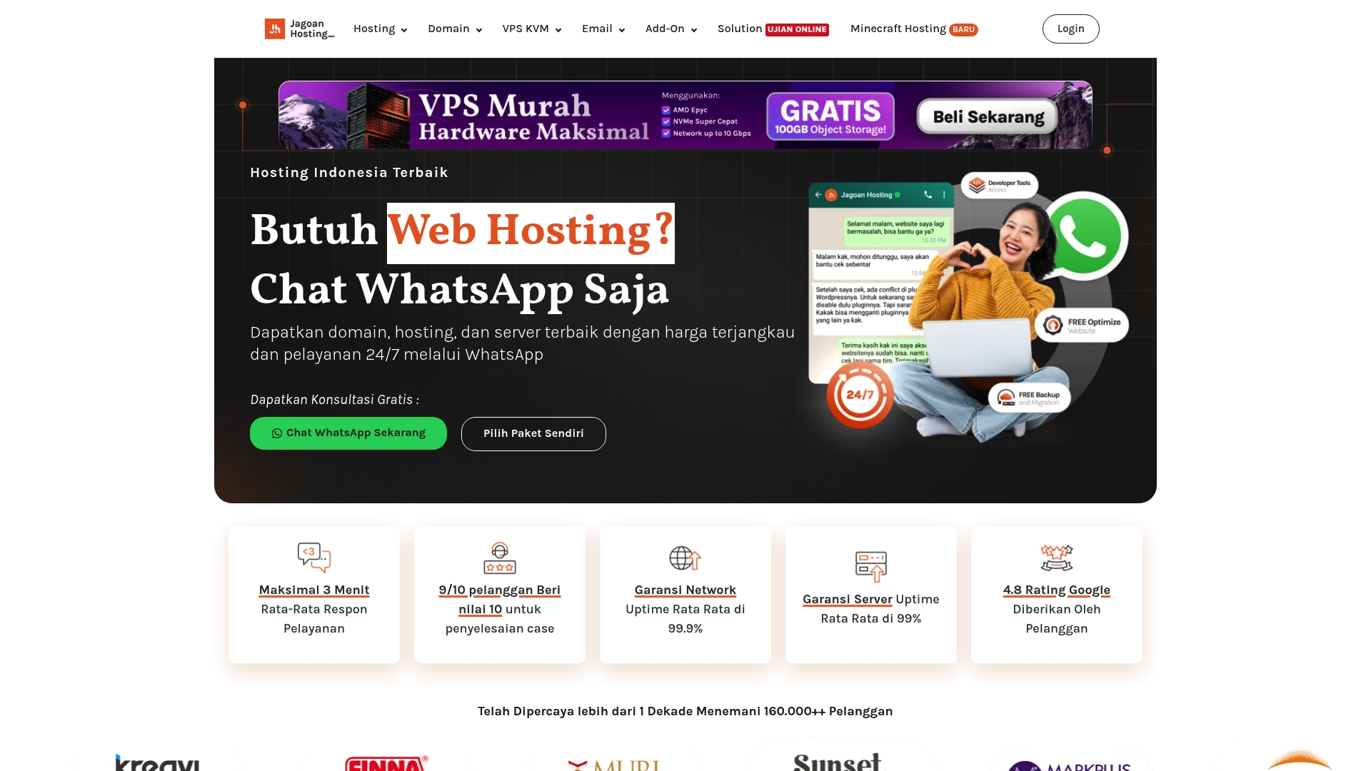 Jagoan Hosting is an established Indonesian provider offering web hosting, domain registration, VPS, and cloud solutions since 2007. Its combination of affordable pricing, local servers, and 24/7 WhatsApp support makes it a pragmatic choice for Indonesian SMBs and developers.