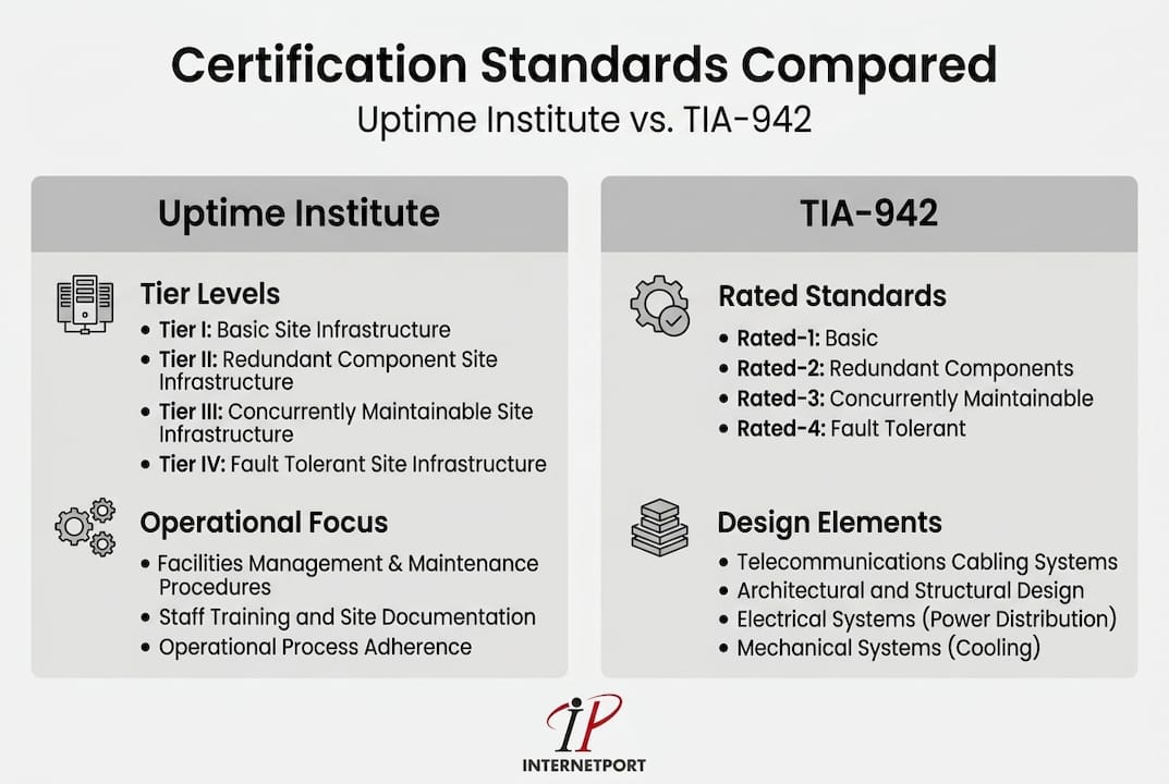 - Key certification standards: Uptime Institute vs. TIA-942